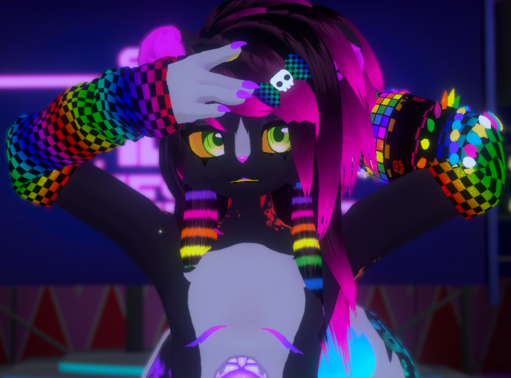 This avatar is made for VRChat. It supports full body tracking and was made with the Valve Index Knuckle controllers in mind. Please read the terms of use below before purchasing this model. This avatar is not Quest-compatible.